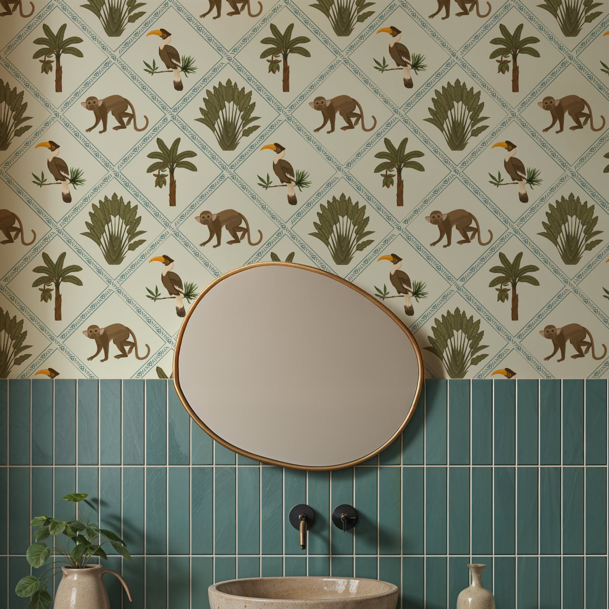 Your wallpaper comes in panels (a.k.a. tiles) ranging from 36 to 52 inches wide, designed to be laid out horizontally on the floor first—this helps align the pattern perfectly before you paste it on the wall. Trust us, it’s worth the few extra minutes of prep.